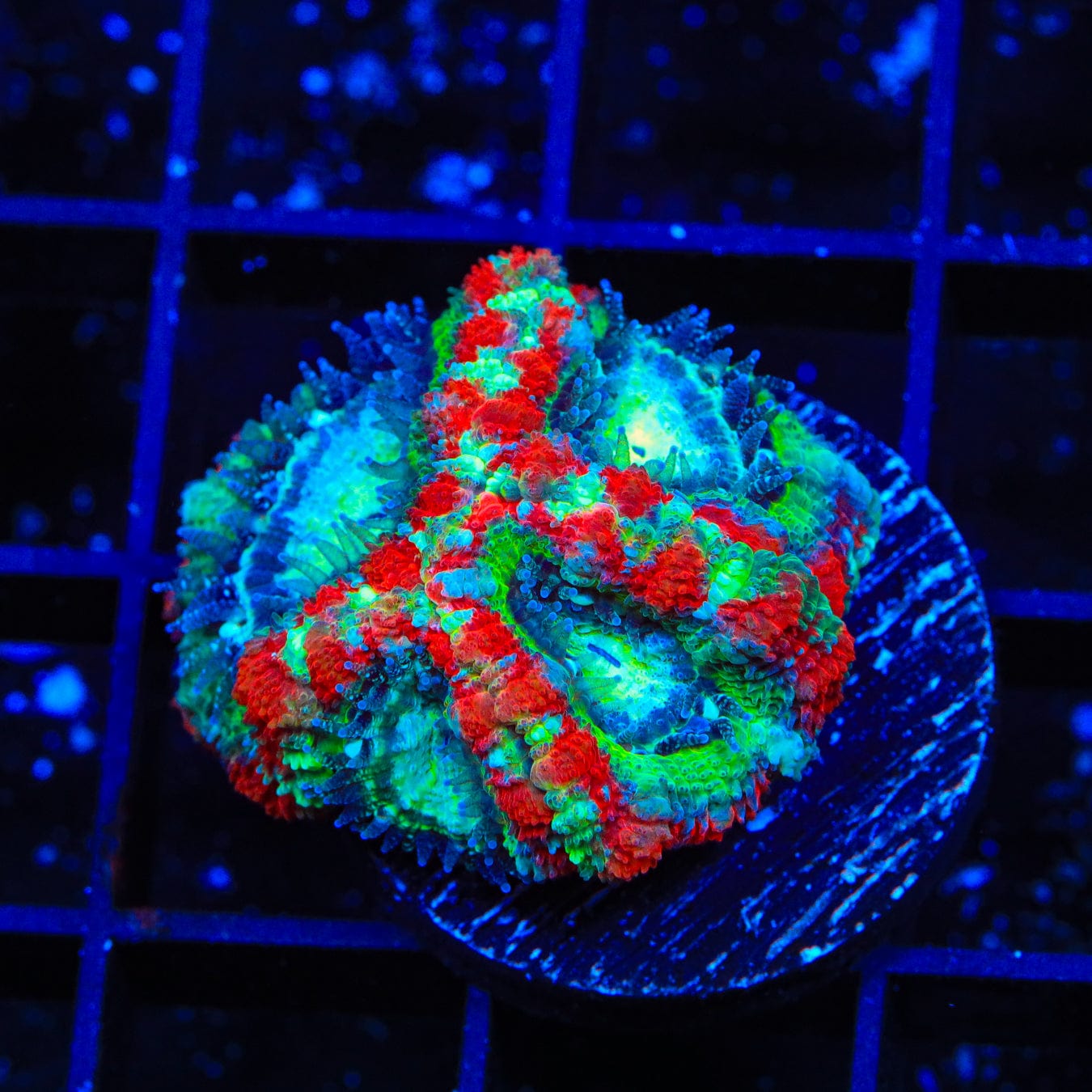 Ultra Acan Coral – WYSIWYG – you will receive the exact piece shown. All frag plugs are 3/4" - 1" unless otherwise stated. Dive into the vibrant world of acan corals, a must-have for any dedicated reef enthusiast. These corals offer not just stunning colors and patterns but also an engaging reefkeeping experience with their unique feeding behaviors and growth patterns.