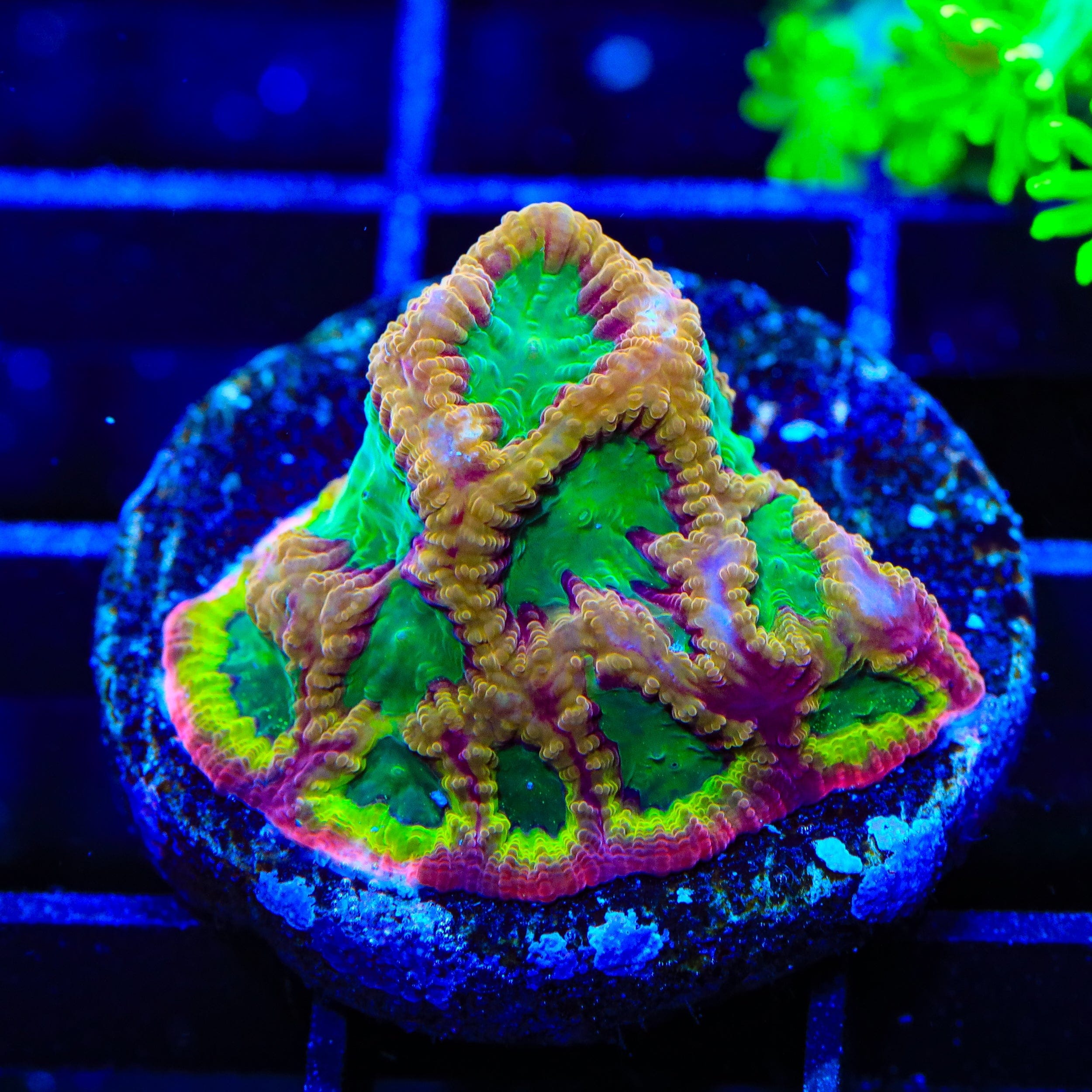In the wild, these corals encrust rock structures and rubble, forming domes or expansive mats as they grow. Their adaptable nature allows them to settle in various light and flow conditions, making them a versatile addition to reef aquariums.