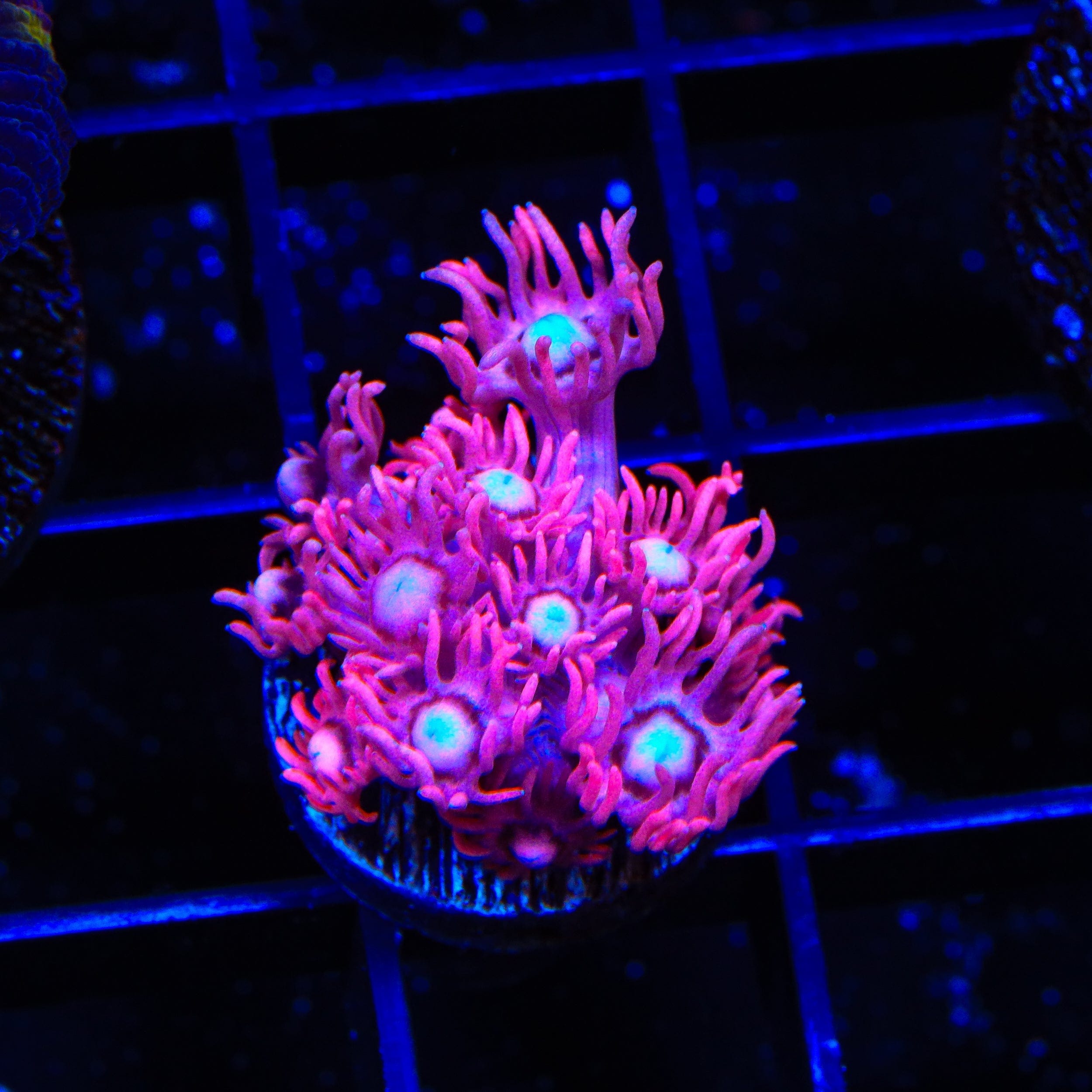 Typically showcasing hues of green, yellow, pink, or purple, Goniopora corals create a mesmerizing display as their polyps extend and sway with the flow of water. Known for their moderate care requirements and adaptability, they are an excellent choice for intermediate reef keepers looking to add a dynamic focal point to their aquascape.