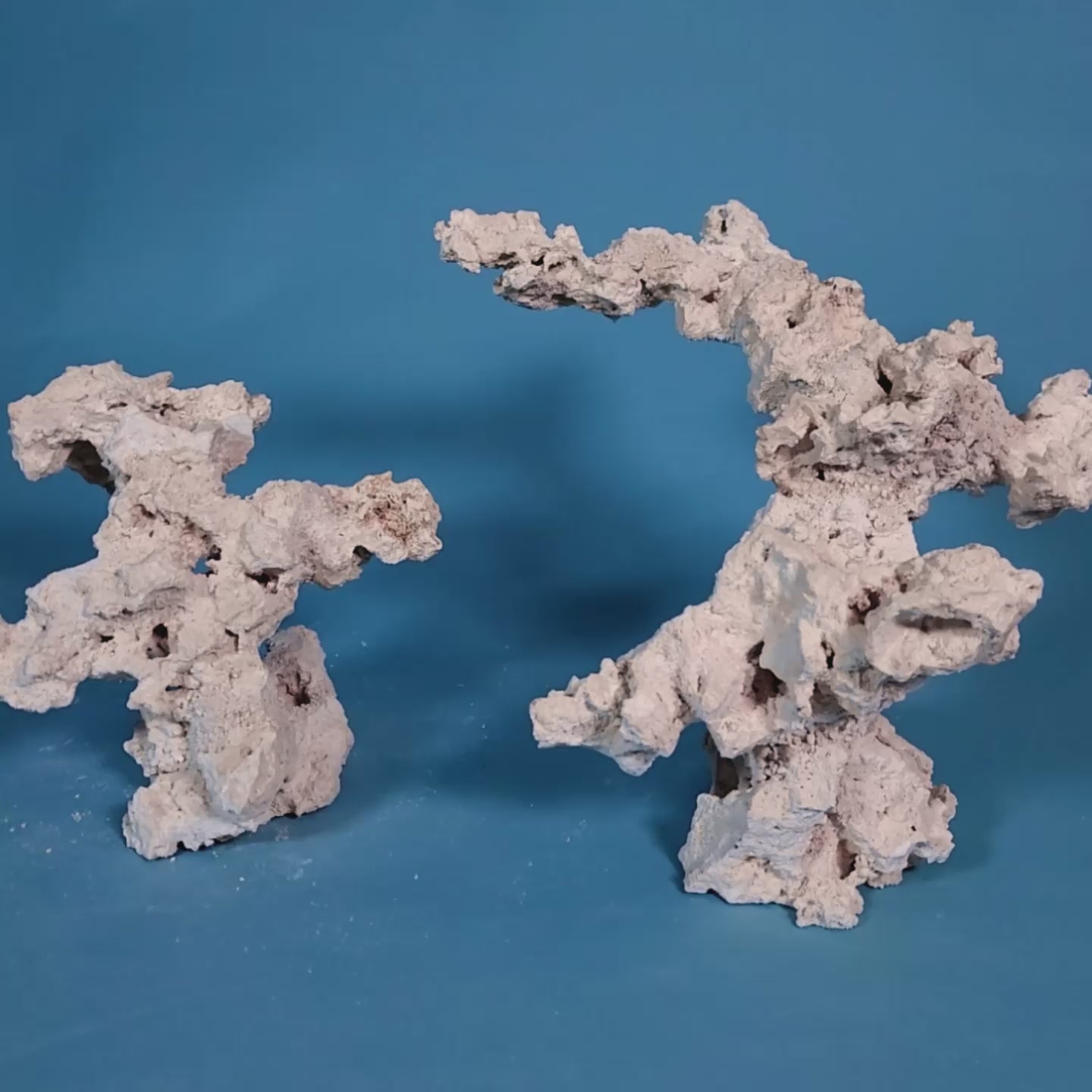 We have listed the max outer dimensions for each rock structure. Selecting the ideal rock size should be based on the space you will need to accommodate the structure, space to clean and work in the tank, and room for coral to fill in open spaces. For example, encrusting coral dominant tanks will work with rock that fill more space versus one that would be stocked with space or structure building coral such as euphyllia and acropora. We recommend using a type of bio media in the sump or filter to support extra stability and handle larger bio-loads and feeding.