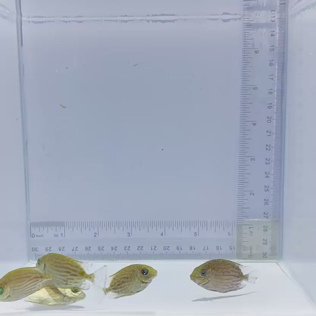 Golden Lined Rabbitfish are peaceful, intelligent, and highly adaptive. They can be shy initially but soon become confident grazers in the open. Their brilliant golden markings intensify under strong reef lighting. Known for their resilience, they adjust well to captive conditions and coexist peacefully with most tankmates.