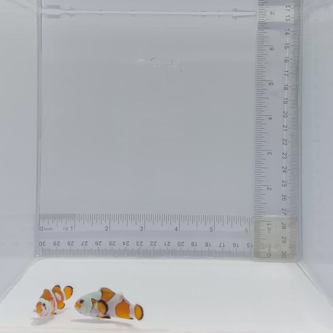 Clownfish come in a wide variety of colors and patterns, with many aquacultured morphs available. Some of the most popular species include: Ocellaris Clownfish (Amphiprion ocellaris) – Classic "Nemo" appearance, available in wild-type and designer morphs Percula Clownfish (Amphiprion percula) – Similar to Ocellaris but with brighter colors and thicker black outlines Maroon Clownfish (Premnas biaculeatus) – Deep red coloration, highly territorial and best kept alone or in pairs Snowflake Clownfish (Amphiprion ocellaris variant) – White and orange designer morph with irregular banding