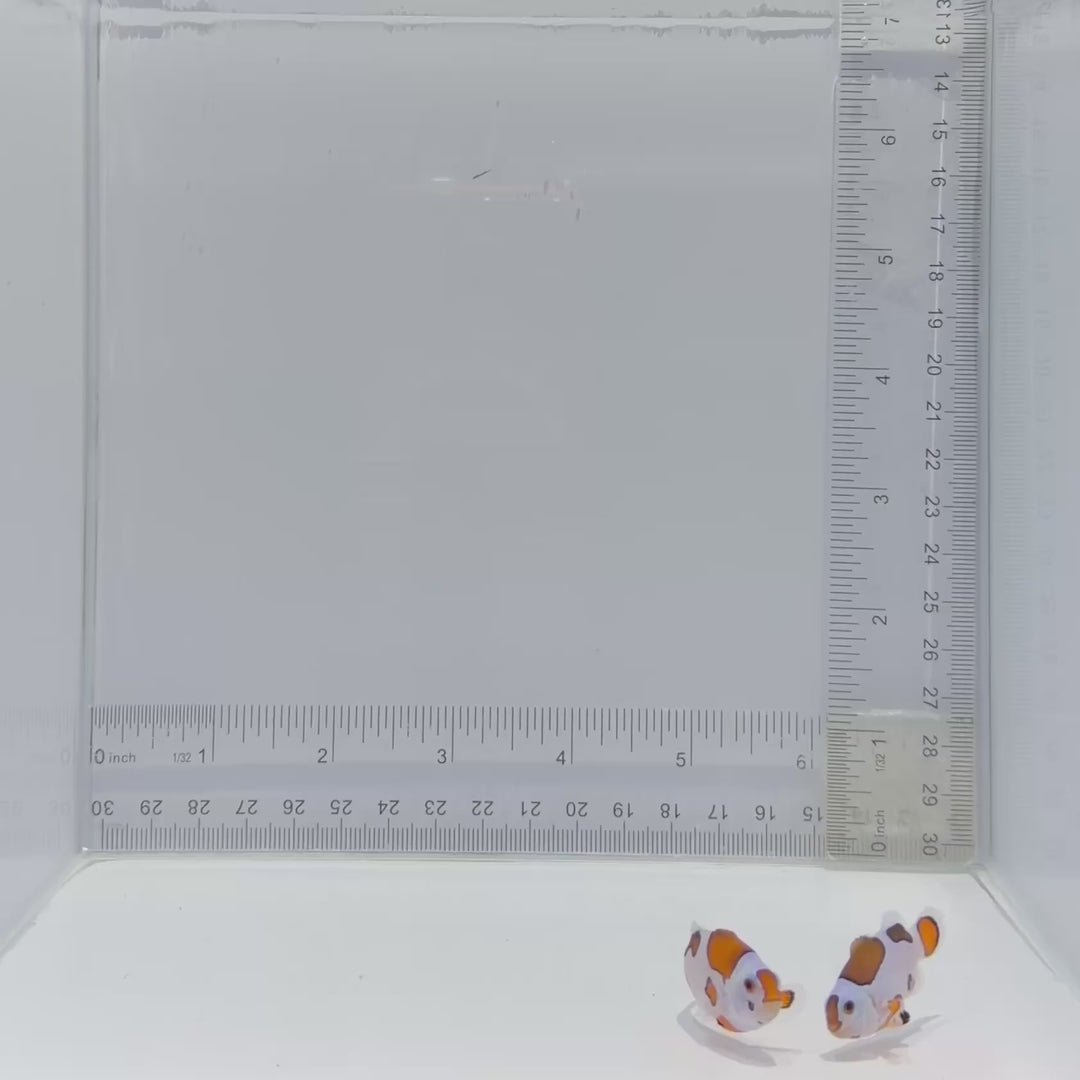 Clownfish come in a wide variety of colors and patterns, with many aquacultured morphs available. Some of the most popular species include: Ocellaris Clownfish (Amphiprion ocellaris) – Classic "Nemo" appearance, available in wild-type and designer morphs Percula Clownfish (Amphiprion percula) – Similar to Ocellaris but with brighter colors and thicker black outlines Maroon Clownfish (Premnas biaculeatus) – Deep red coloration, highly territorial and best kept alone or in pairs Snowflake Clownfish (Amphiprion ocellaris variant) – White and orange designer morph with irregular banding
