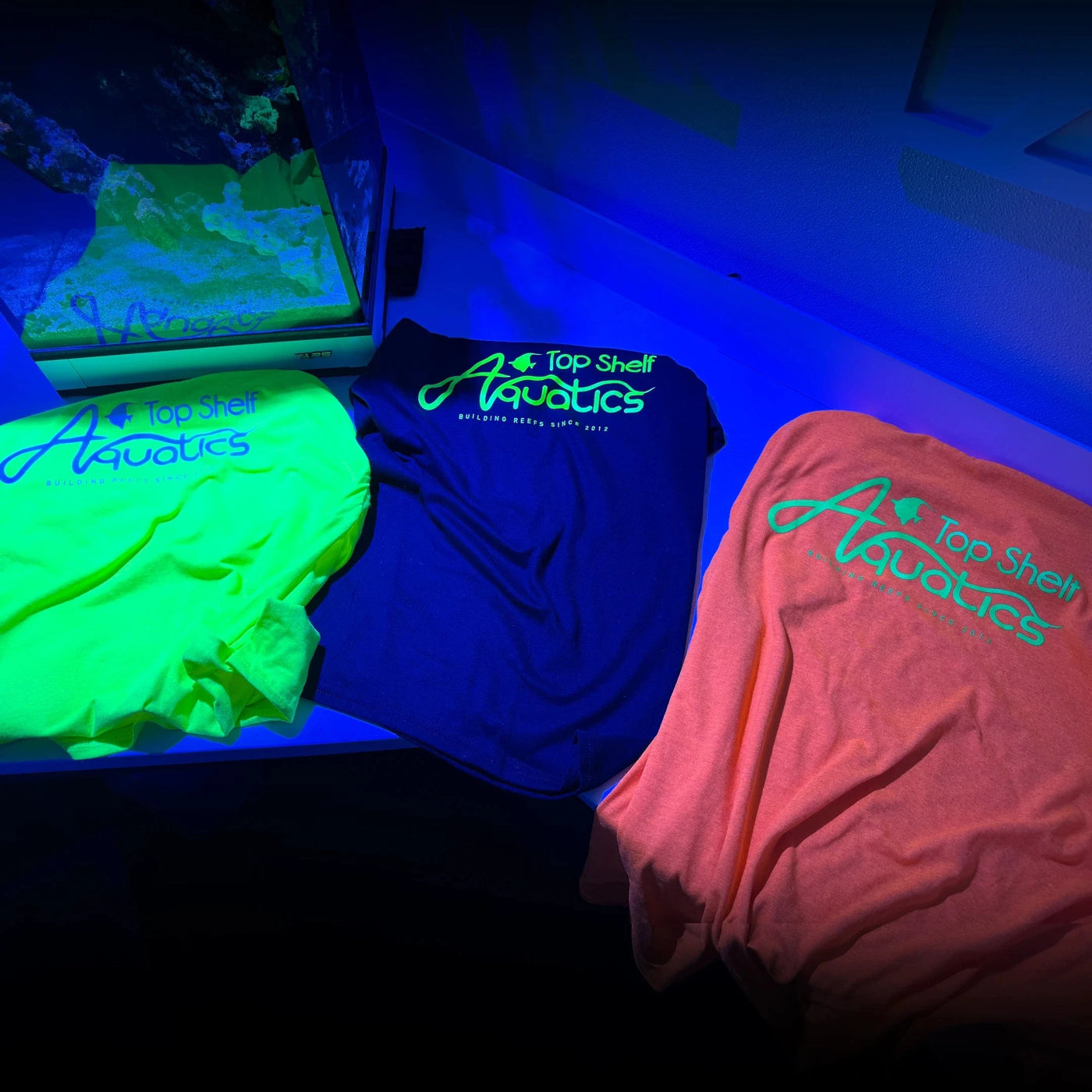 Join the Top Shelf movement with this UV reactive t-shirt! Stand out in any setting with the bold outline logo design that glows under UV light. Printed on a comfortable 50/50 blend cotton t-shirt.