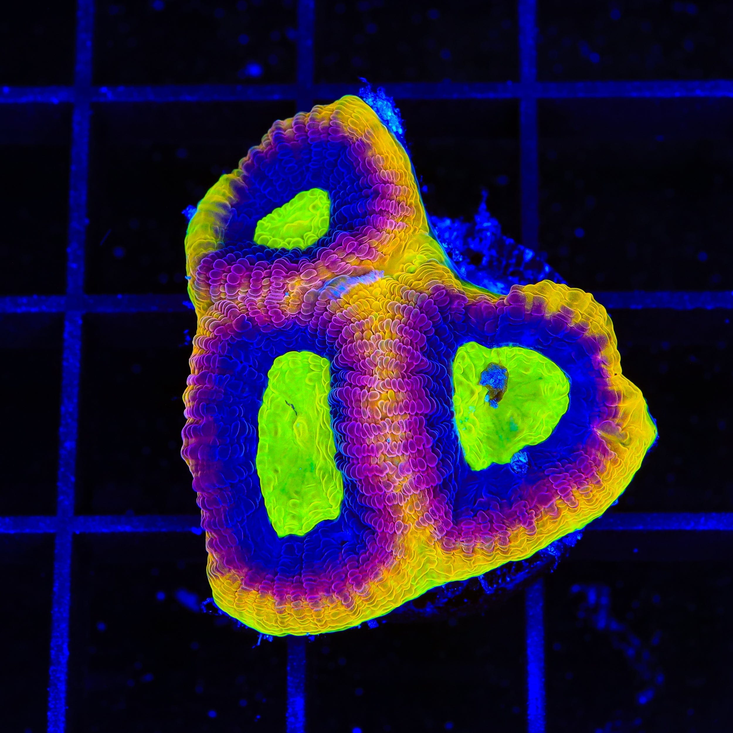 At Top Shelf Aquatics, we use a combination of Ecotech Marine Radions and metal halides to create balanced lighting conditions that promote healthy growth and rich coloration for our Favia specimens.