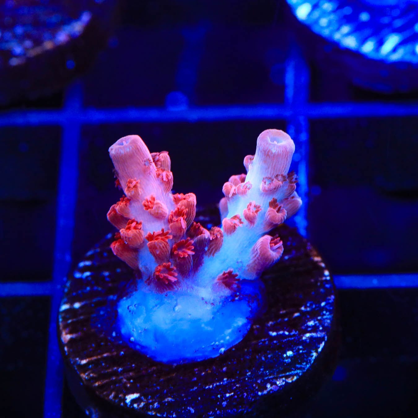 Introducing the CB Maleficent Acropora Coral, a true masterpiece for enthusiasts seeking the pinnacle of their reef aquarium collections. WYSIWYG – you will receive the exact piece shown, ensuring that the vibrant colors and unique structure you see is exactly what graces your tank. All frag plugs are 3/4" - 1" unless otherwise stated, perfect for easily integrating into your existing setup.