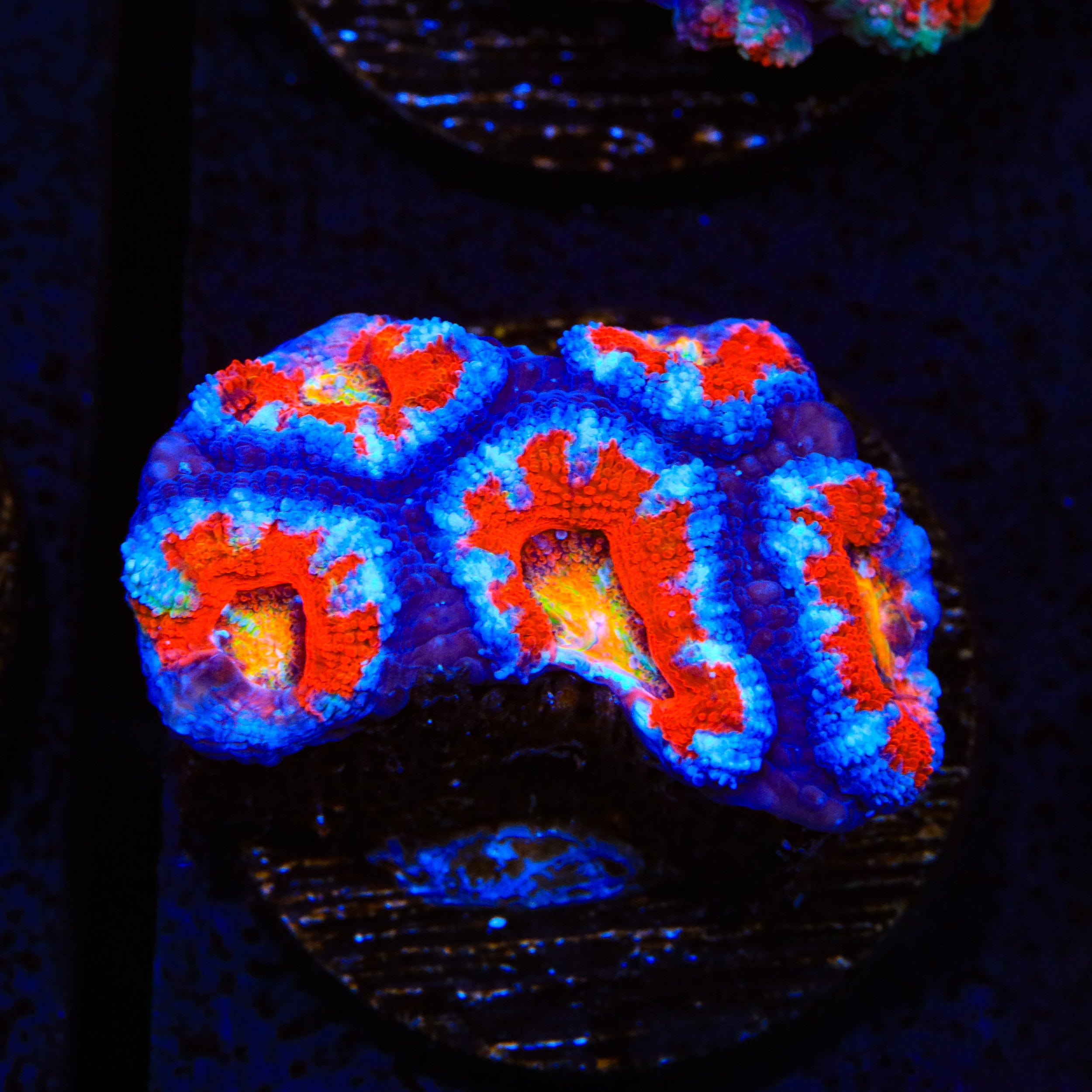 Acans are tolerant of slightly higher nutrient levels compared to some other LPS corals, making them suitable for a variety of tank setups. Regular water changes and parameter testing are key to keeping them healthy and maintaining their brilliant coloration.