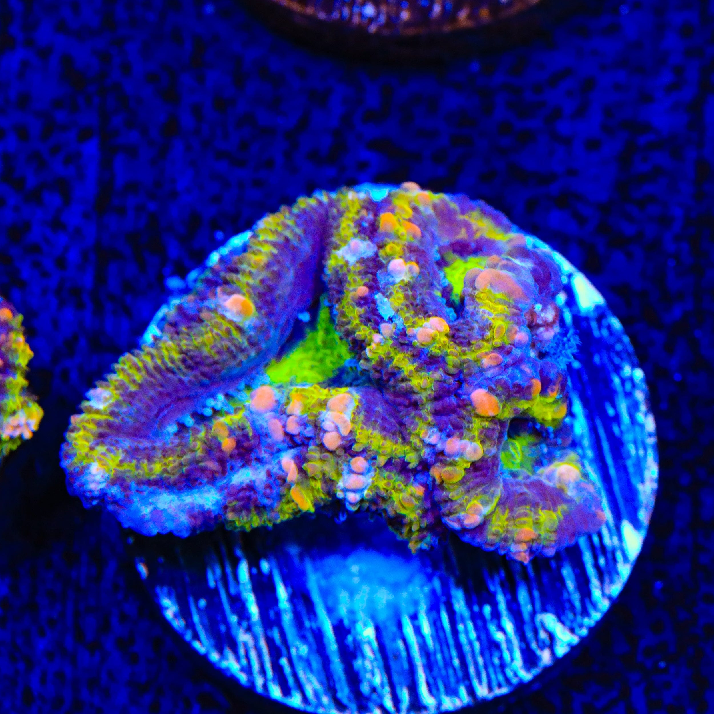 Acans are tolerant of slightly higher nutrient levels compared to some other LPS corals, making them suitable for a variety of tank setups. Regular water changes and parameter testing are key to keeping them healthy and maintaining their brilliant coloration.