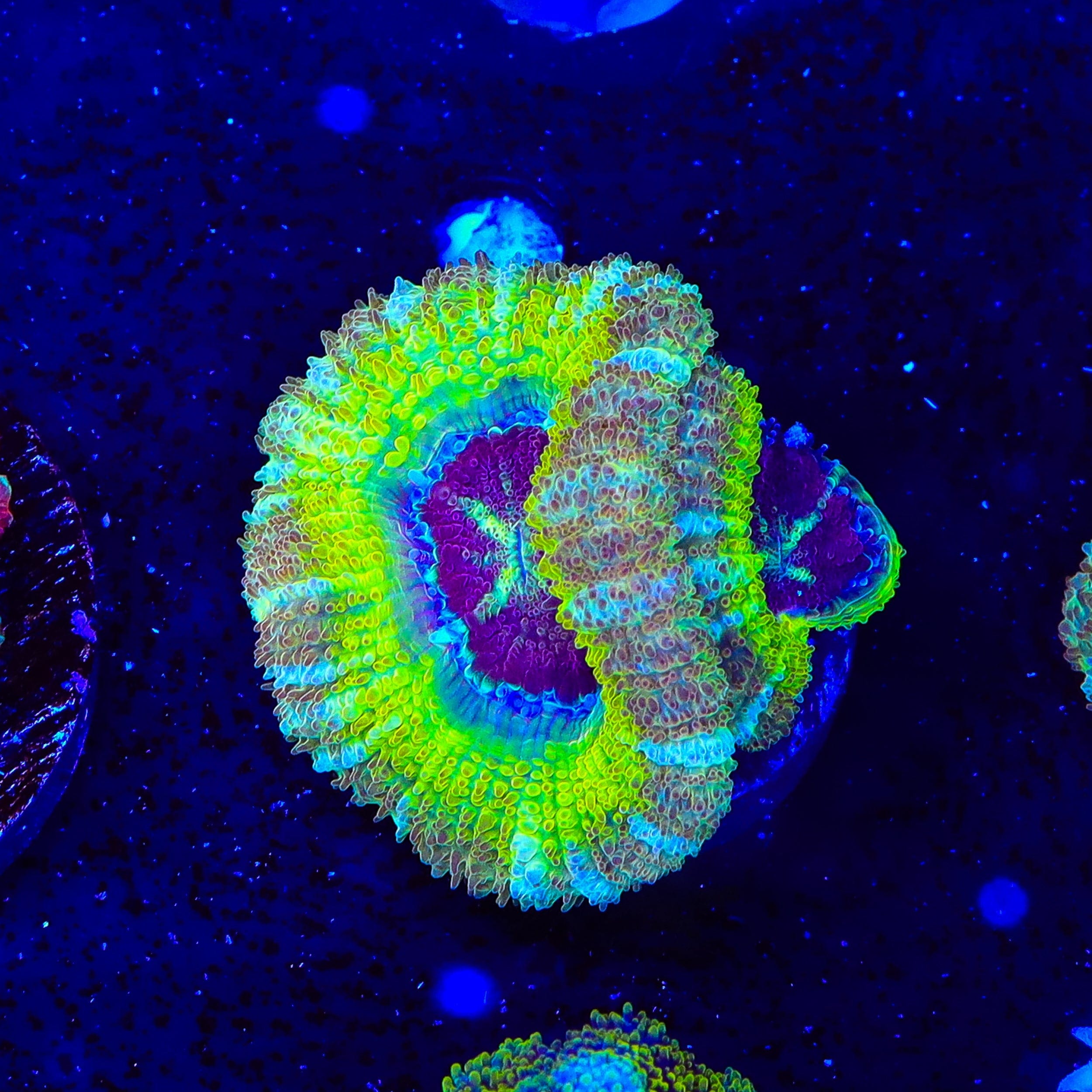 Acans are tolerant of slightly higher nutrient levels compared to some other LPS corals, making them suitable for a variety of tank setups. Regular water changes and parameter testing are key to keeping them healthy and maintaining their brilliant coloration.