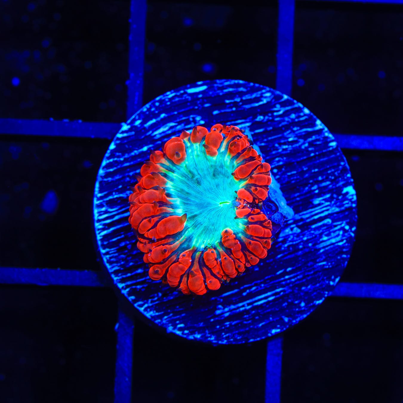Experience the vibrant beauty of the Blastomussa coral, a must-have addition to any reef aquarium. This stunning coral variety is renowned for its intense coloration and intriguing patterns, making it a standout choice for aquarists seeking to add a splash of color to their underwater ecosystems. The Spiderman Blastomussa, in particular, boasts a unique appearance that mimics the iconic superhero's costume, making it an eye-catching centerpiece in any tank.