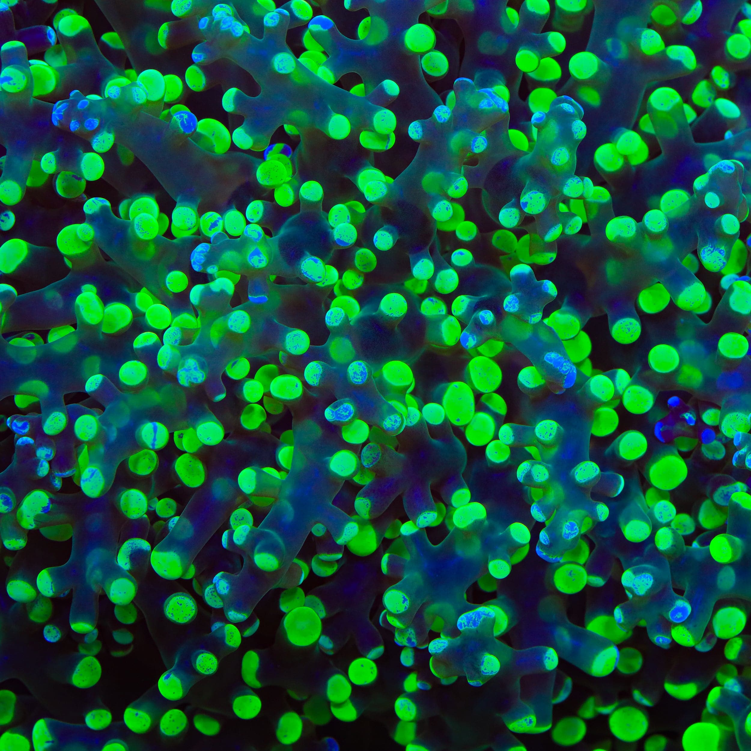 These corals are prized for their vibrant colors, ranging from bright greens and golds to multi-tone varieties with contrasting tips. Their coloration is influenced by lighting, water quality, and feeding. Deeper blue lighting enhances their vivid hues, while balanced lighting supports consistent growth.