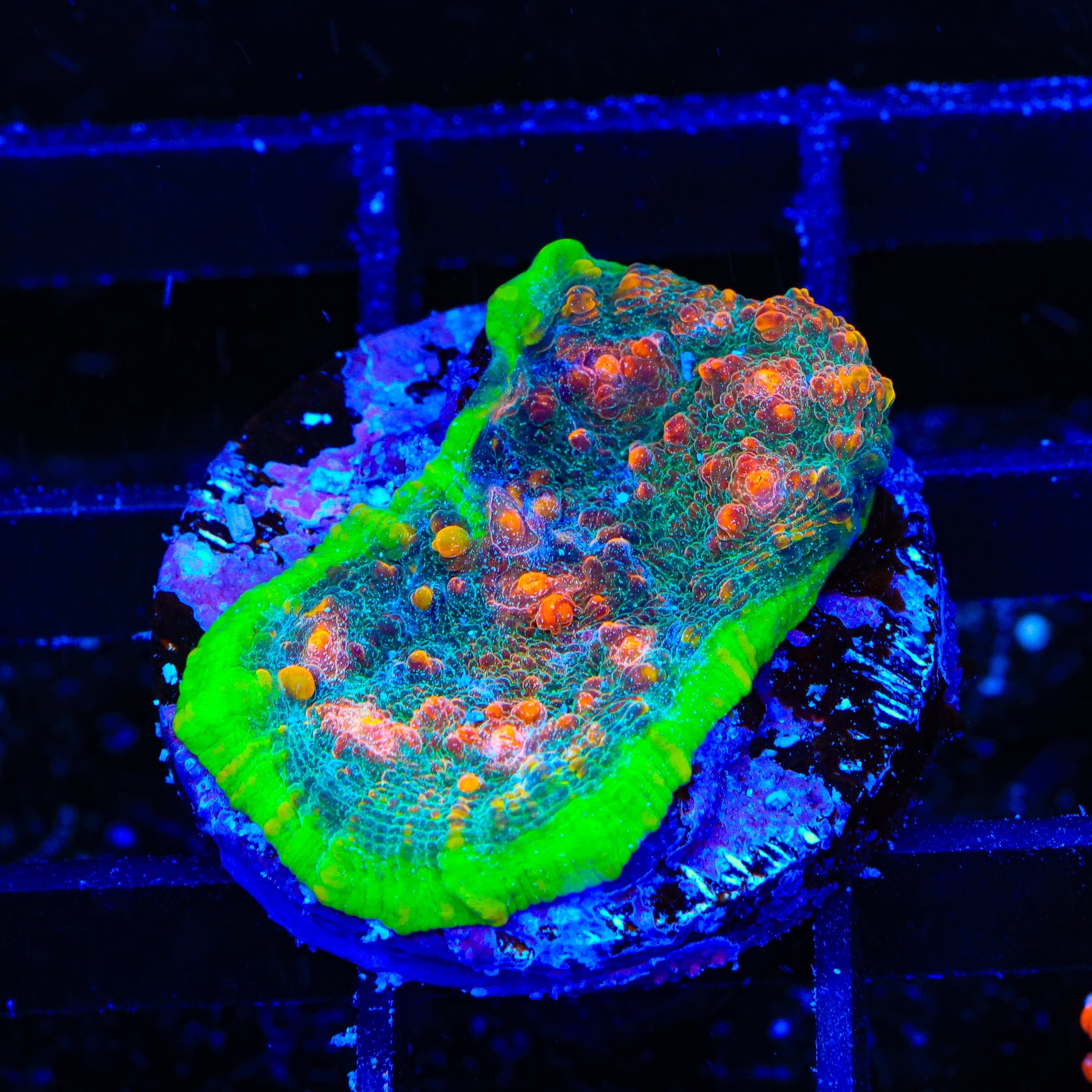 Propagation begins by selecting healthy parent colonies and fragging them with precision to minimize stress. Each frag is securely mounted with reef-safe glue or epoxy and placed in grow-out tanks where they are monitored for growth and coloration. This sustainable process ensures we provide aquacultured Chalice corals that are well-suited for reef tanks and help promote sustainable practices within the reefing hobby.